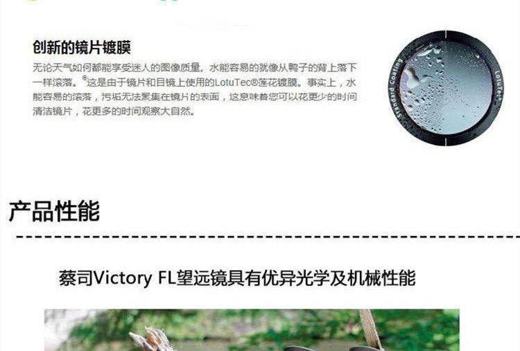 光学材质:4片超低色散(萤石)物镜,全表面多层莲花镀膜。
