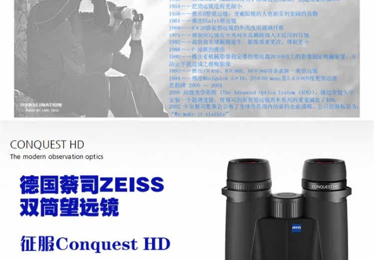 原装进口蔡司望远镜 征服者10x42 HD高清专业