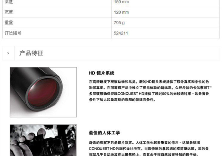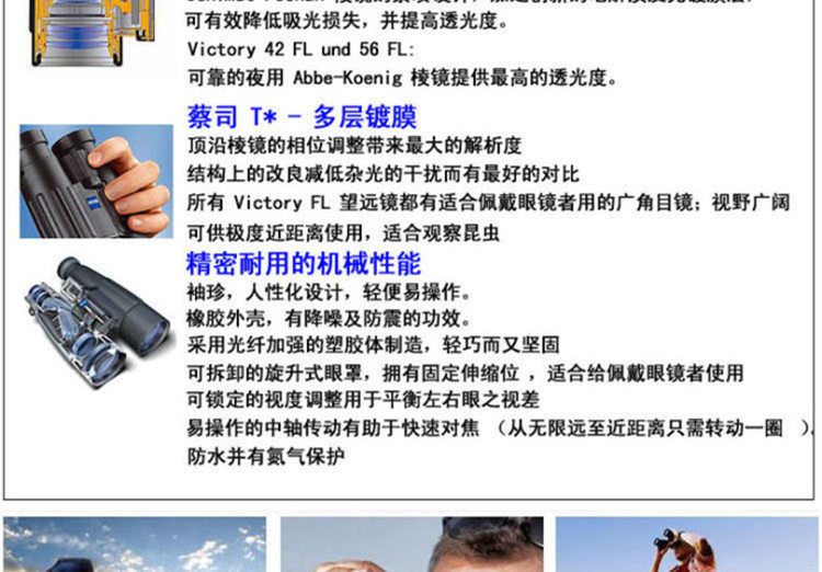 蔡司征服者8x42 HD 超高清防水旅游望远镜