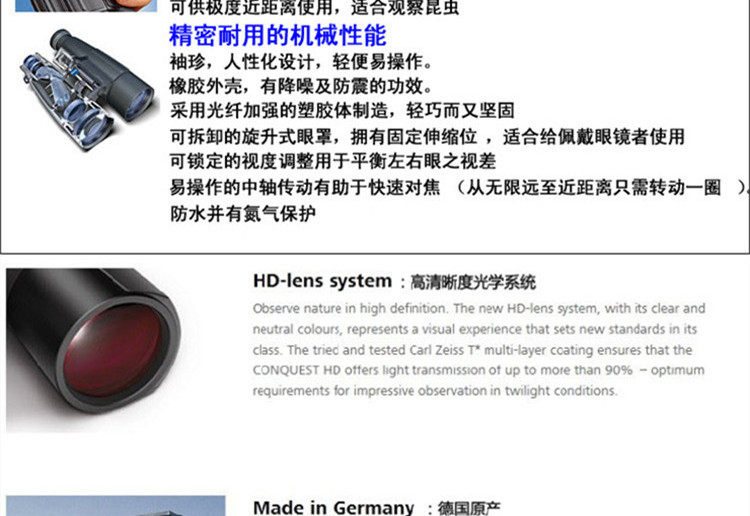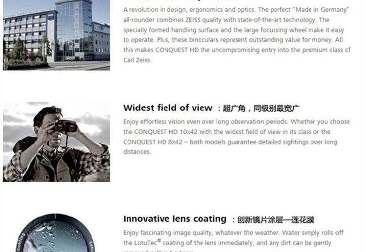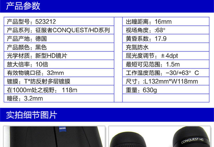 原装蔡司望远镜征服者10x32HD 超高清防水新款