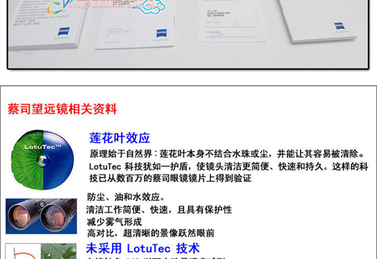 我们的每一台望远镜都有防水,防尘功能。可抗高温,耐严寒,即使在恶劣的环境中使用也可对其信赖。蔡司望远镜有着超长的使用寿命。