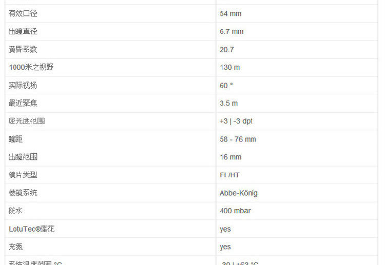 胜利 VICTORY HT 系列基本参数规格 8X54