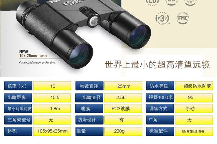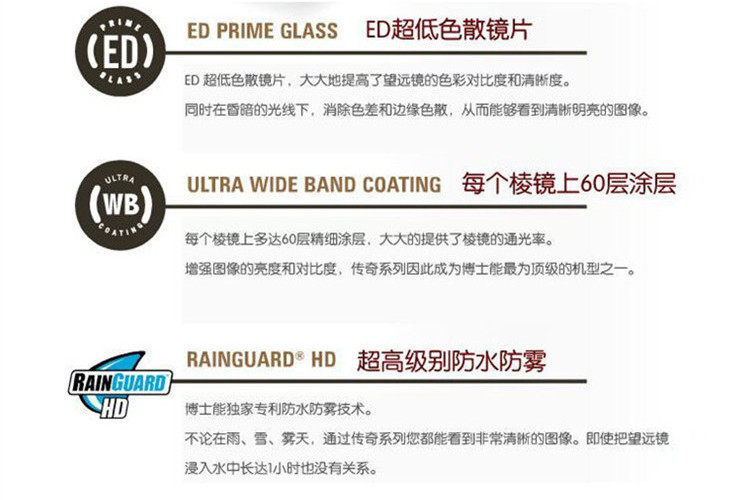 美国博士能望远镜传奇 10x25充氮防水ED镜片超高清望远镜 190125产品详细介绍